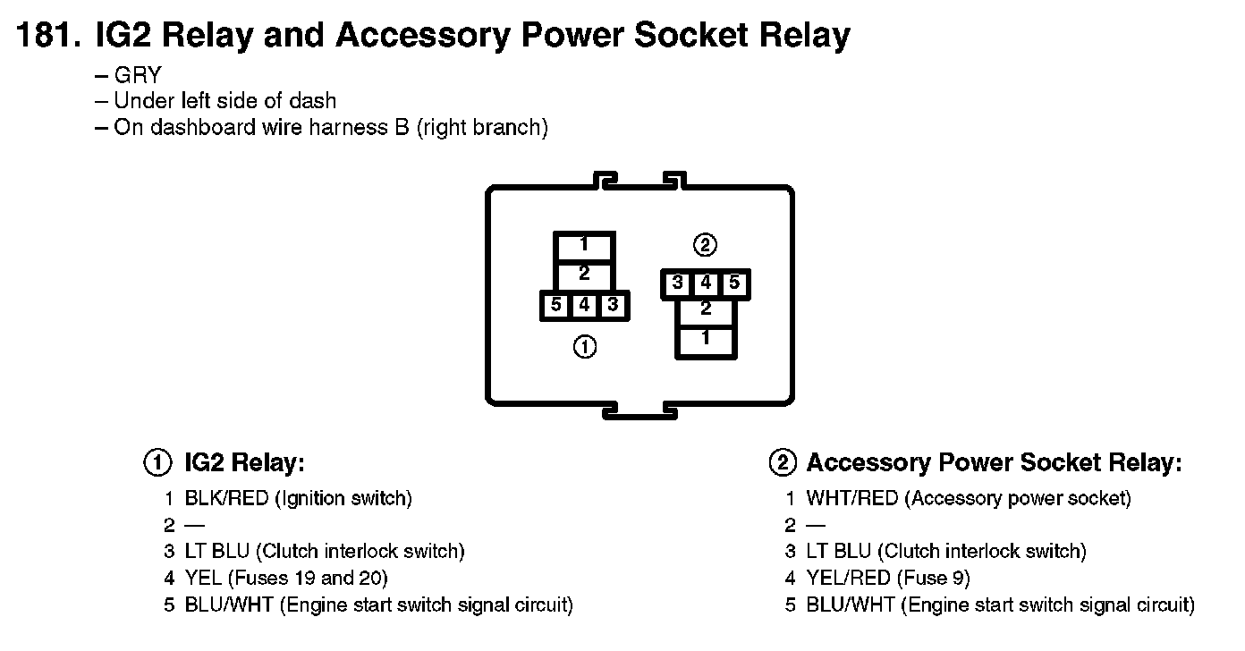 181. IG2 Relay And Accessory Power Socket Relay: