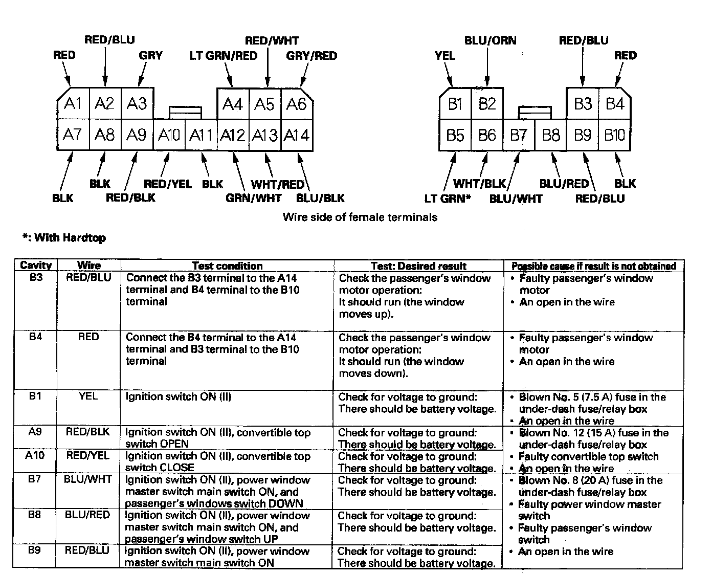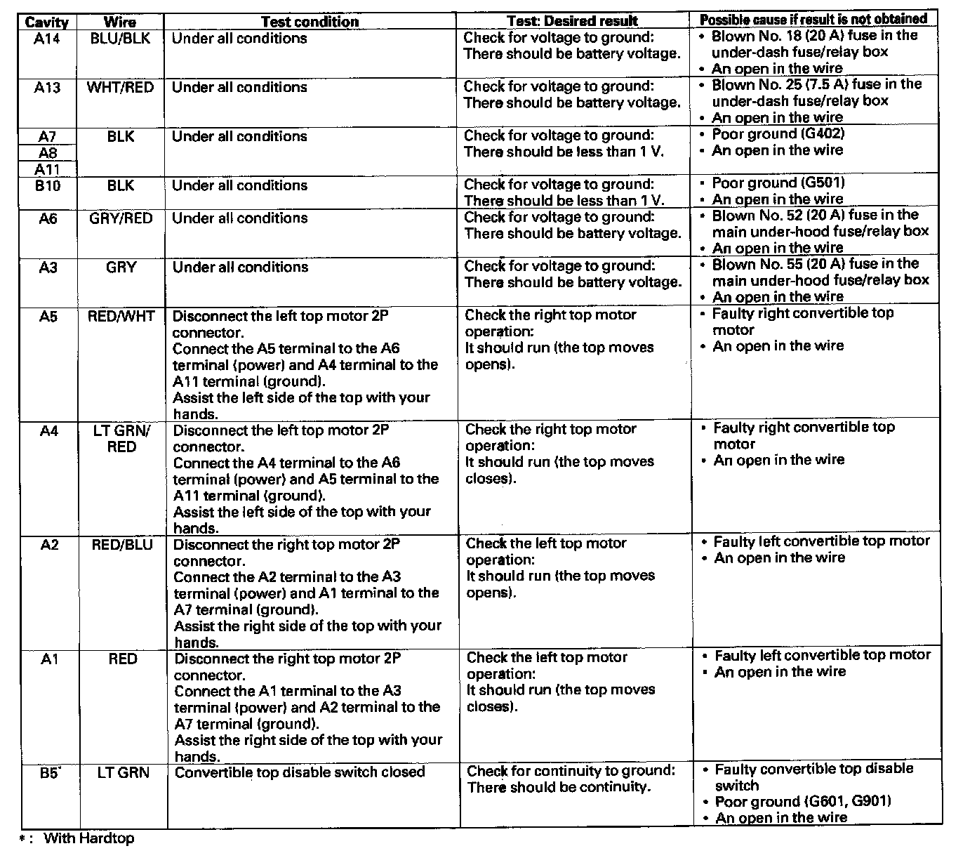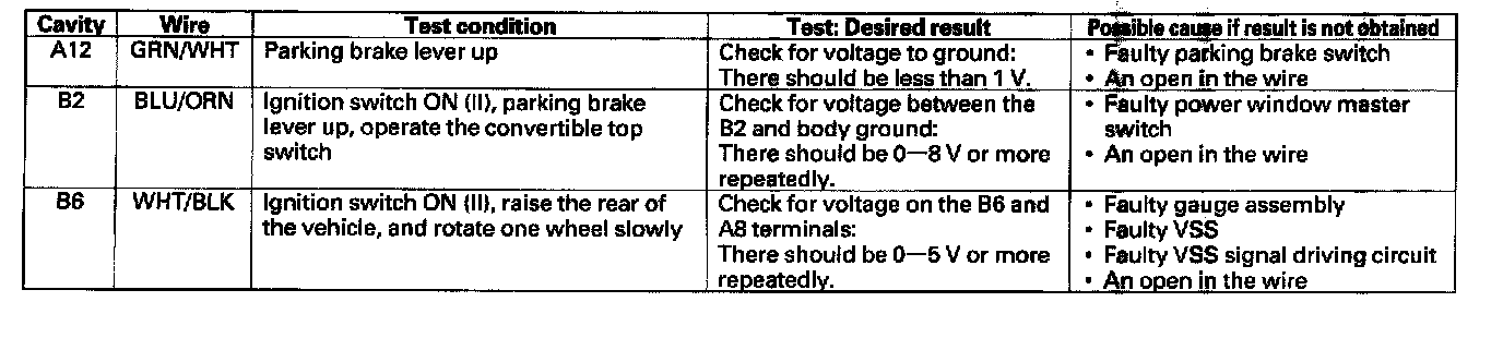 Home >> Honda >> 2006 >> S2000 L4-2.2L >> Repair and Diagnosis >> Body and Frame >> Roof and Associated Components >> Convertible Top >> Convertible Top Control Module >> Testing and Inspection