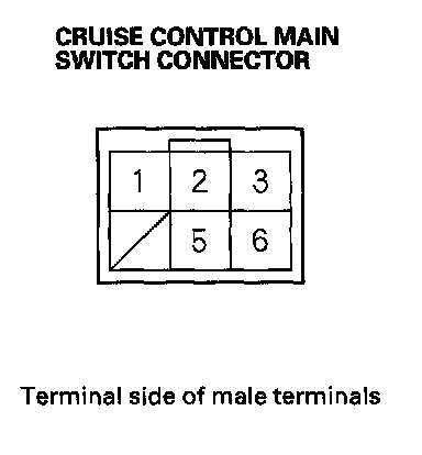 4. If a failure occurs between terminals No. 6 and No. 1, replace the cruise control main switch.