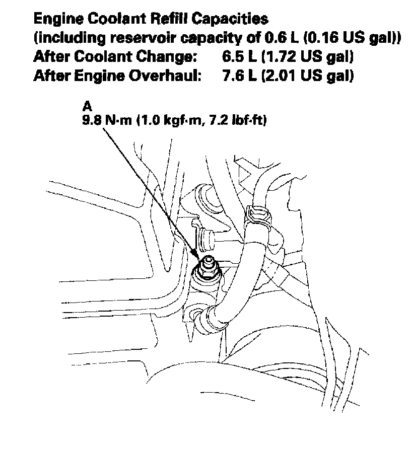 10. Tighten the air bleed bolt as soon as coolant starts to run out in a steady stream.