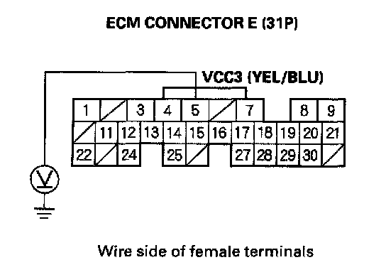 59. Measure voltage between ECM connector terminal E7 and body ground.