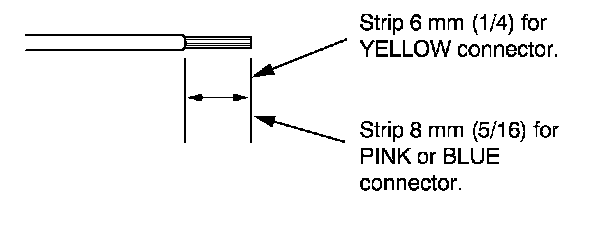 7. If you are using a yellow splice connector, strip about 6 mm (1/4 inch) of insulation off the ends of both wires. If you are using a pink or blue splice connector, strip off about 8 mm (5/16 inch) of insulation.