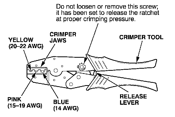 8. Put the splice connector in the proper size slot in the Crimper Tool, slide it to one end (where the flare begins), and close the crimper handles far enough to hold it in place. To release the ratchet mechanism at any point after the first click, squeeze the handles slightly and push the release lever, then let the handles open.