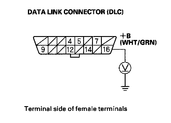 1. Measure voltage between DLC terminal No. 16 and body ground.