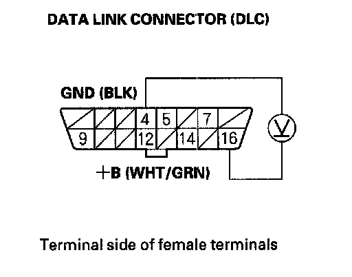 2. Measure voltage between DLC terminals No. 4 and No. 16.