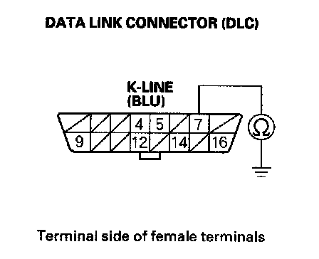 9. Check for continuity between DLC terminal No. 7 and body ground.