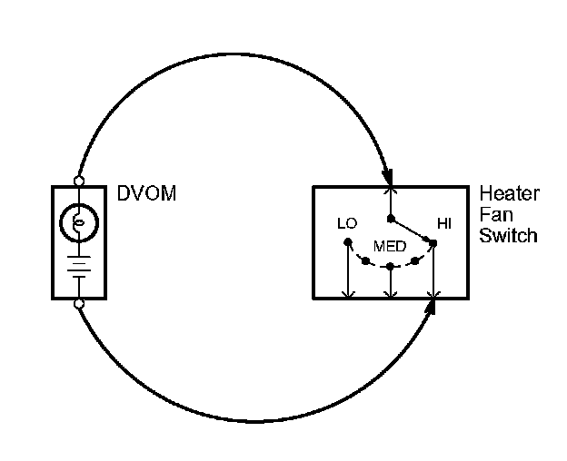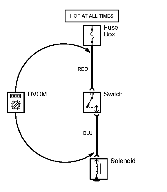 1. Place the digital volt/ohmmeter (DVOM) in the appropriate DC volts range. Connect the positive lead to the end of the wire (or to the connector or switch) closest to the battery.