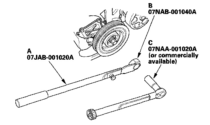 Tighten the bolt to 49 Nm (5.0 kgf-m, 36 ft. lbs.) with a torque wrench and 19 mm socket (C). Do not use an impact wrench.
