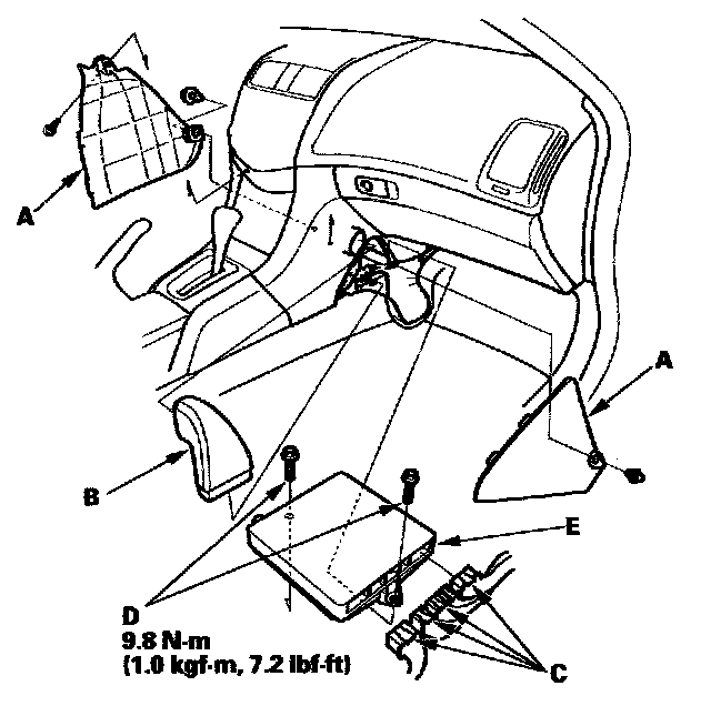 11. Remove the bolts (D), then remove the PCM (E).