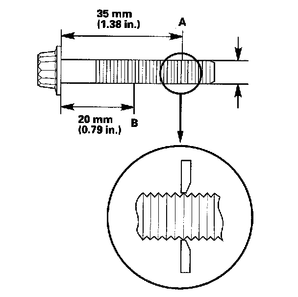 Measure the diameter of each connecting rod bolt at point A and point B.
