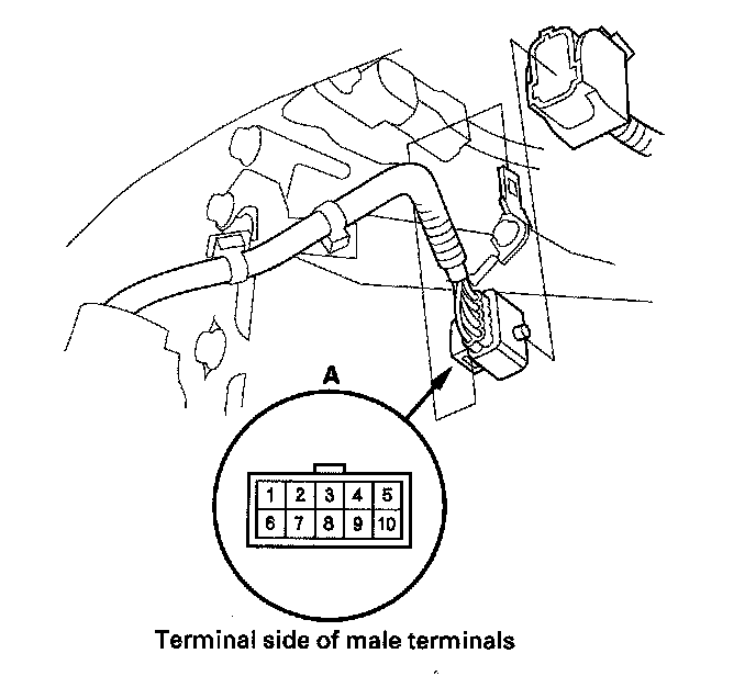 3. Check for continuity between terminals at the harness connector. There should be continuity between the terminals in the following table for each switch position.