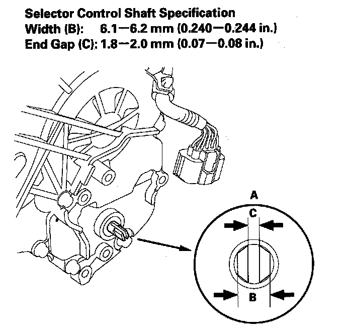 10. If the measurement of the selector control shaft end is within the specification, replace the transmission range switch. If the measurement is out of the specification, repair the selector control shaft end, and recheck the transmission range switch continuity.