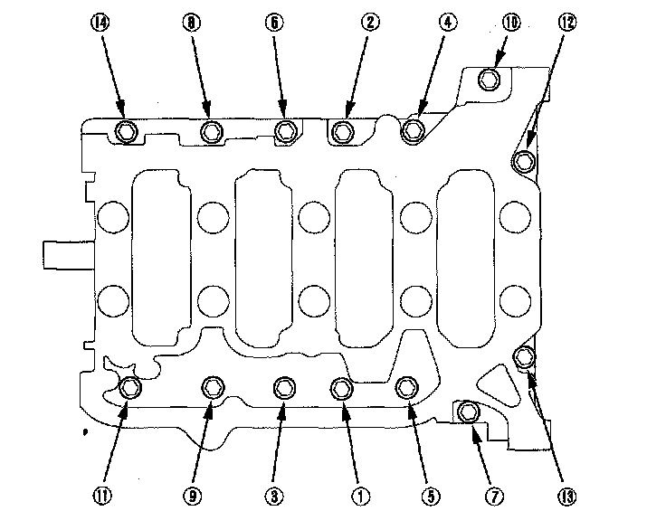 Main Bearing Cap1st Tighten the bearing cap bolts, in sequence 29 N-m (3.0 kgf-m, 22 lbf-ft).