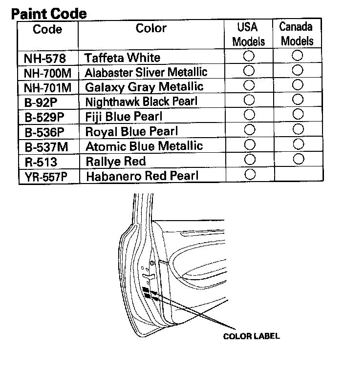 Paint Code - 2-door Model: