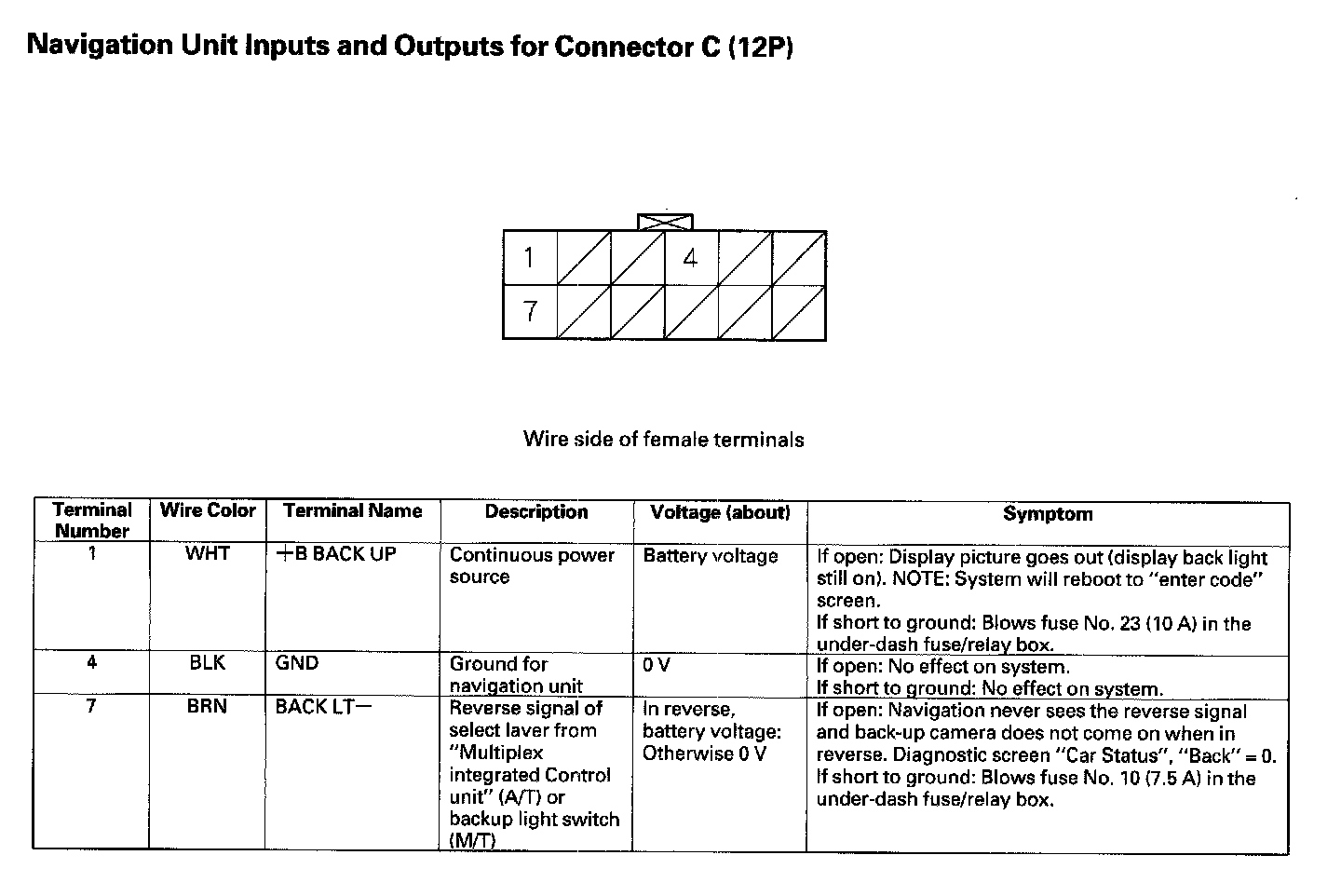 Navigation Unit Inputs And Outputs For Connector C (12P):