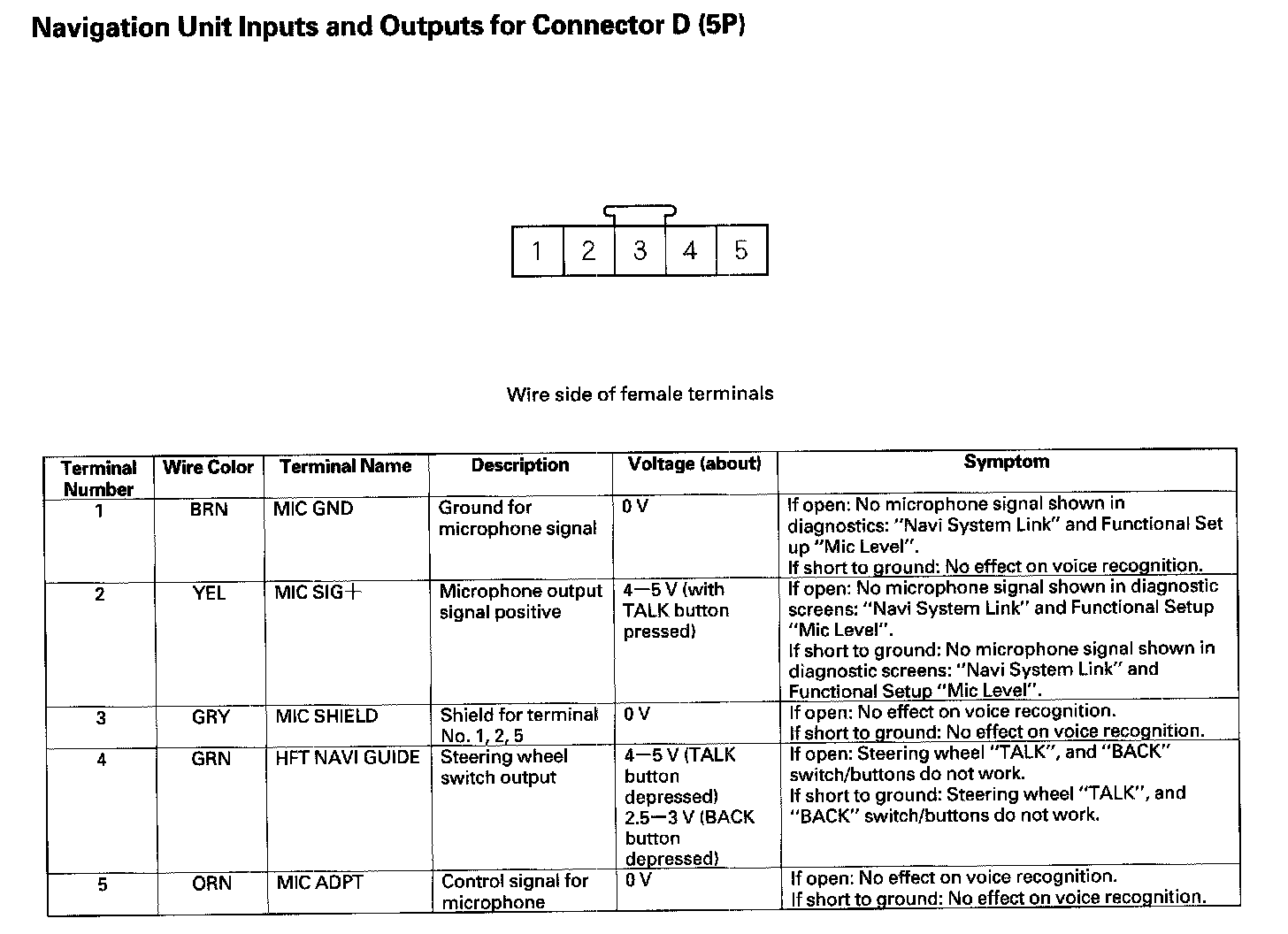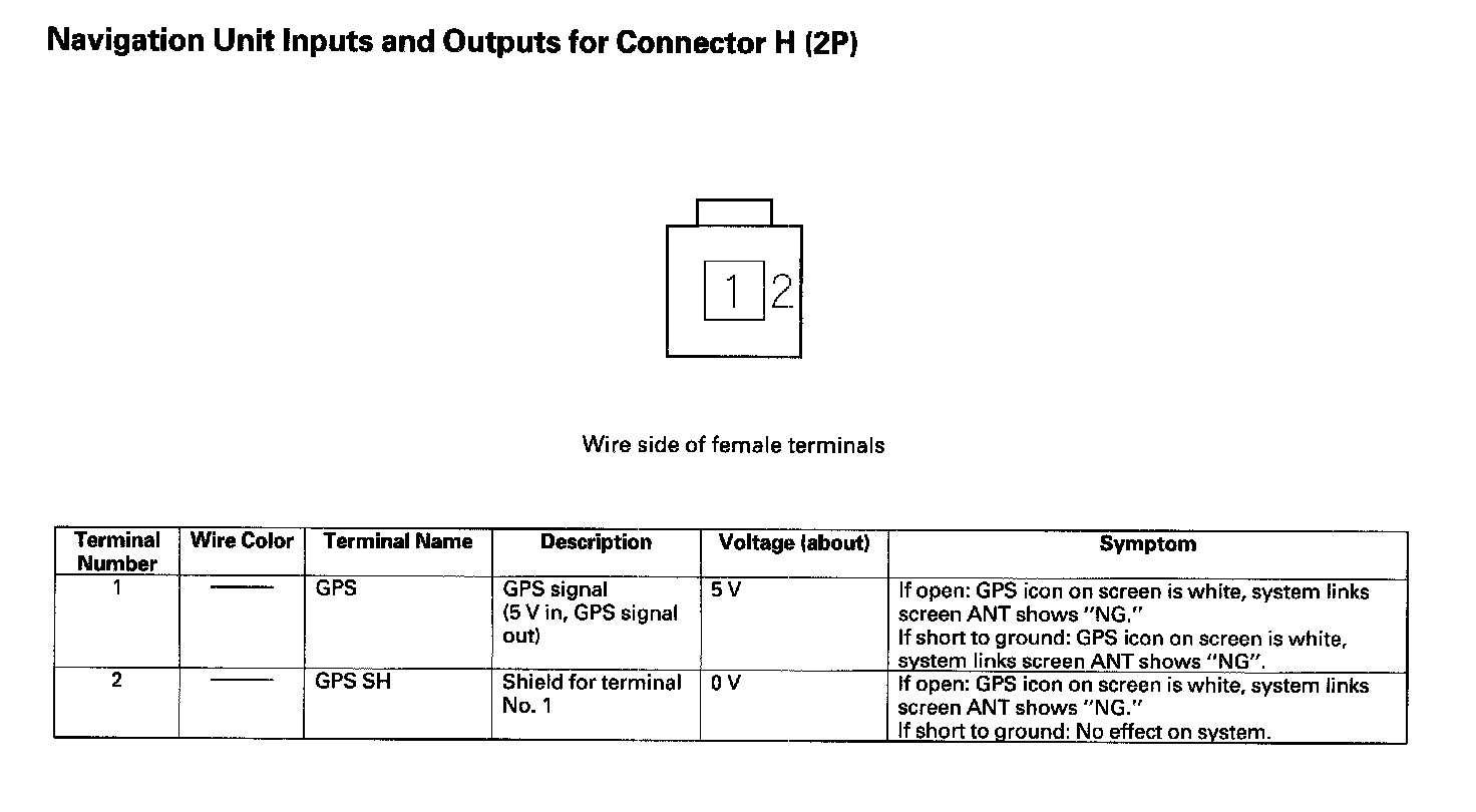 Navigation Unit Inputs And Outputs For Connector H (2P):