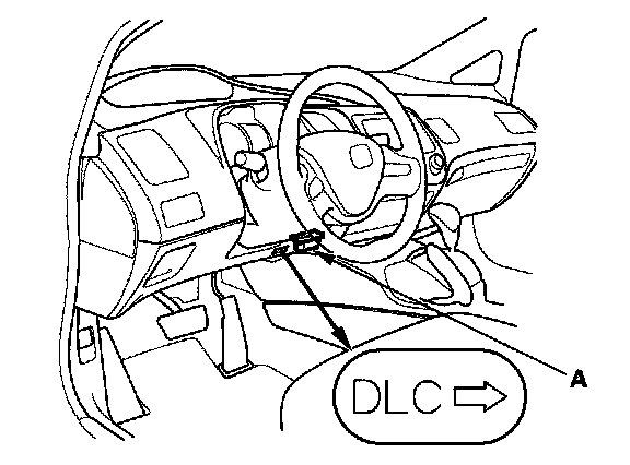 2. Connect the HDS to the data link connector (DLC) (A) located under the driver's side of the dashboard.