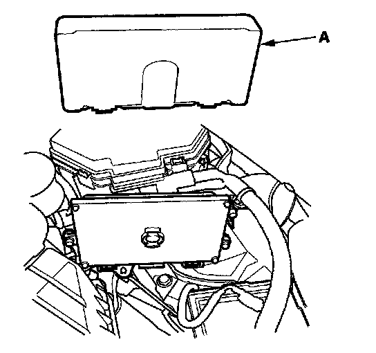 3. Lift up the under-hood fuse/relay box (D).