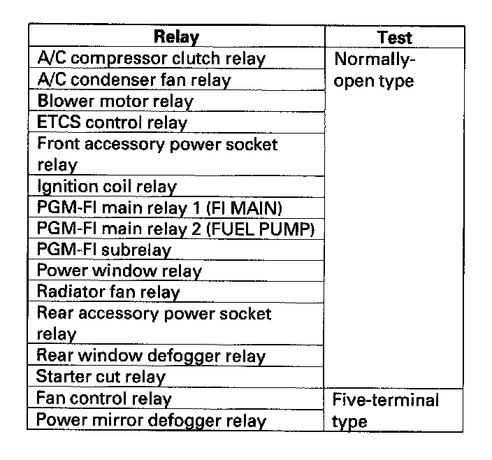 Power Relay TestUse this chart to identify the type of relay, then do the test listed for it.