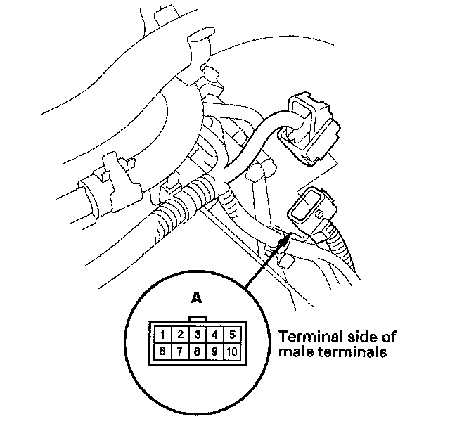 3. Check for continuity between terminals at the harness connector. There should be continuity between the terminals in the following table for each switch position.