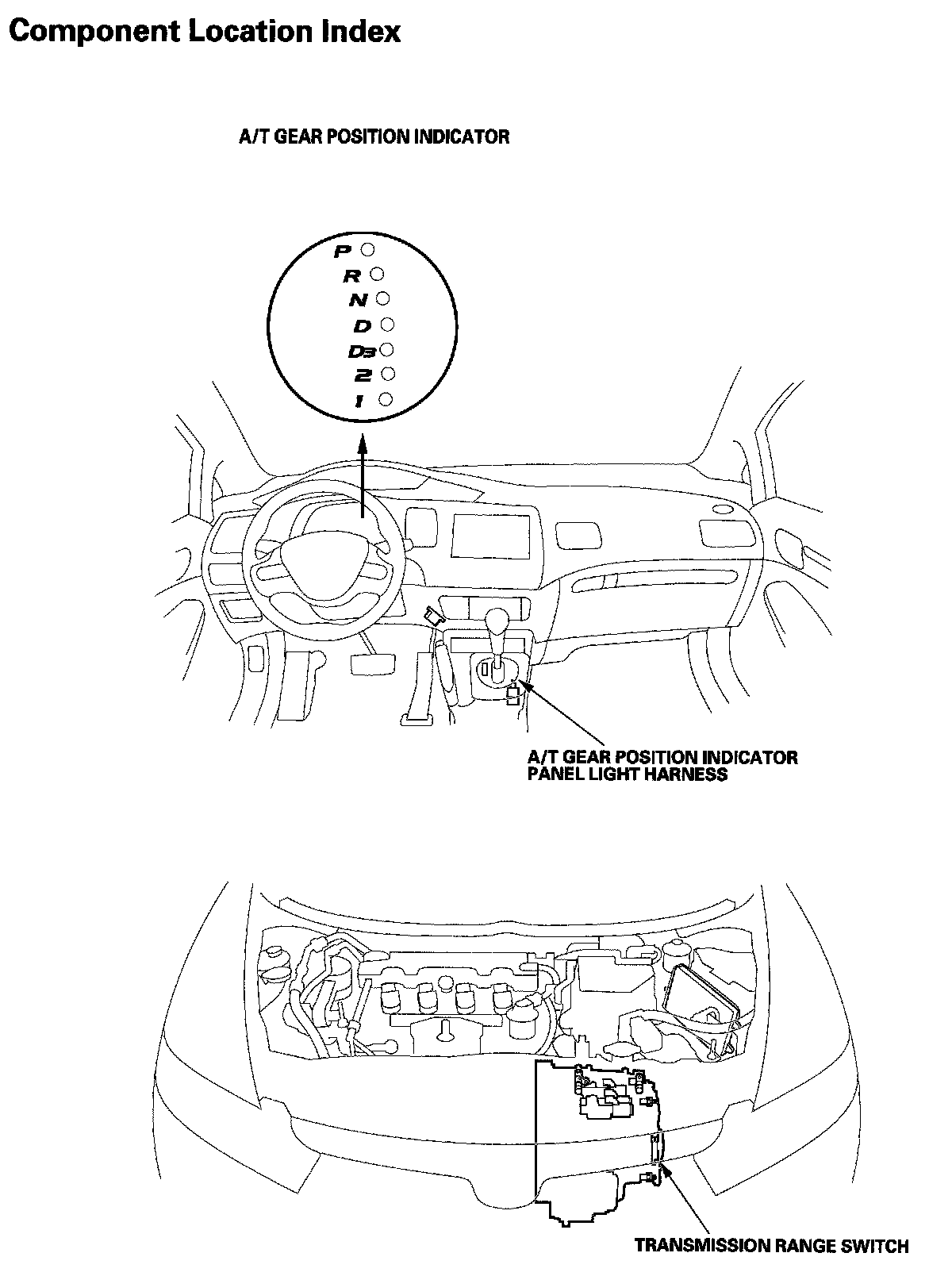 A/T Gear Position Indicator Component Location Index: