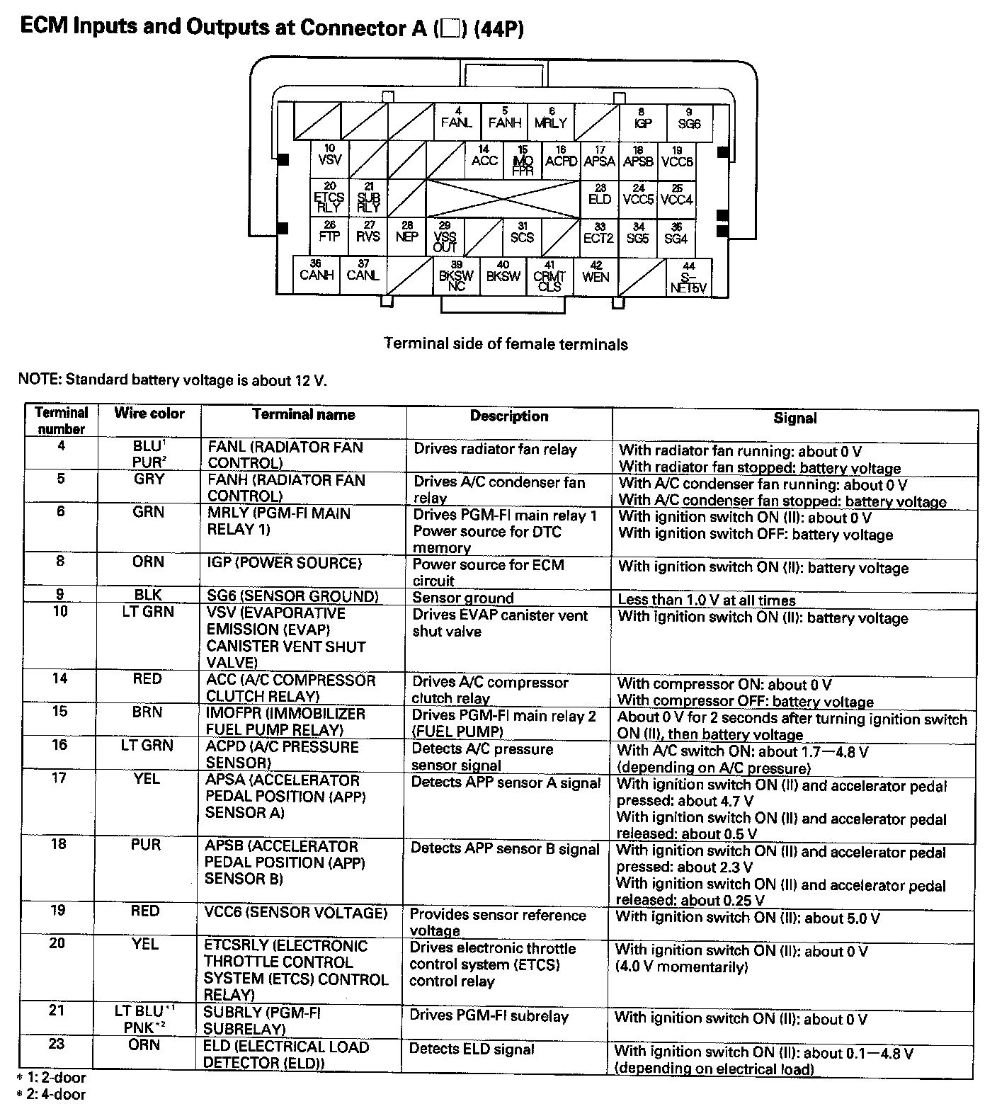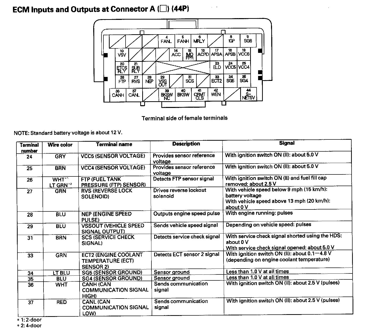 ECM Inputs And Outputs Connector A (44P) (Part 2):