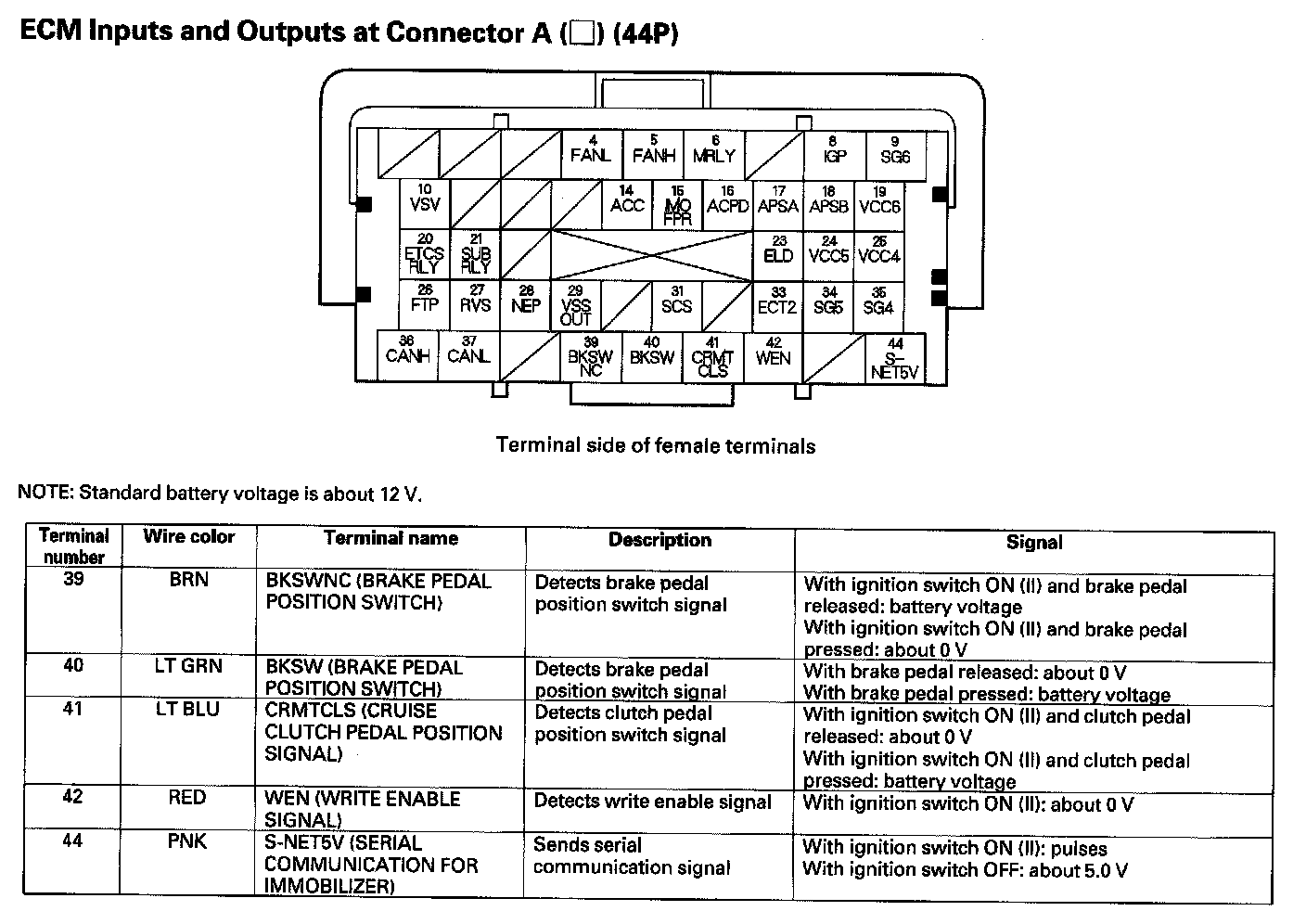 ECM Inputs And Outputs Connector A (44P) (Part 3):