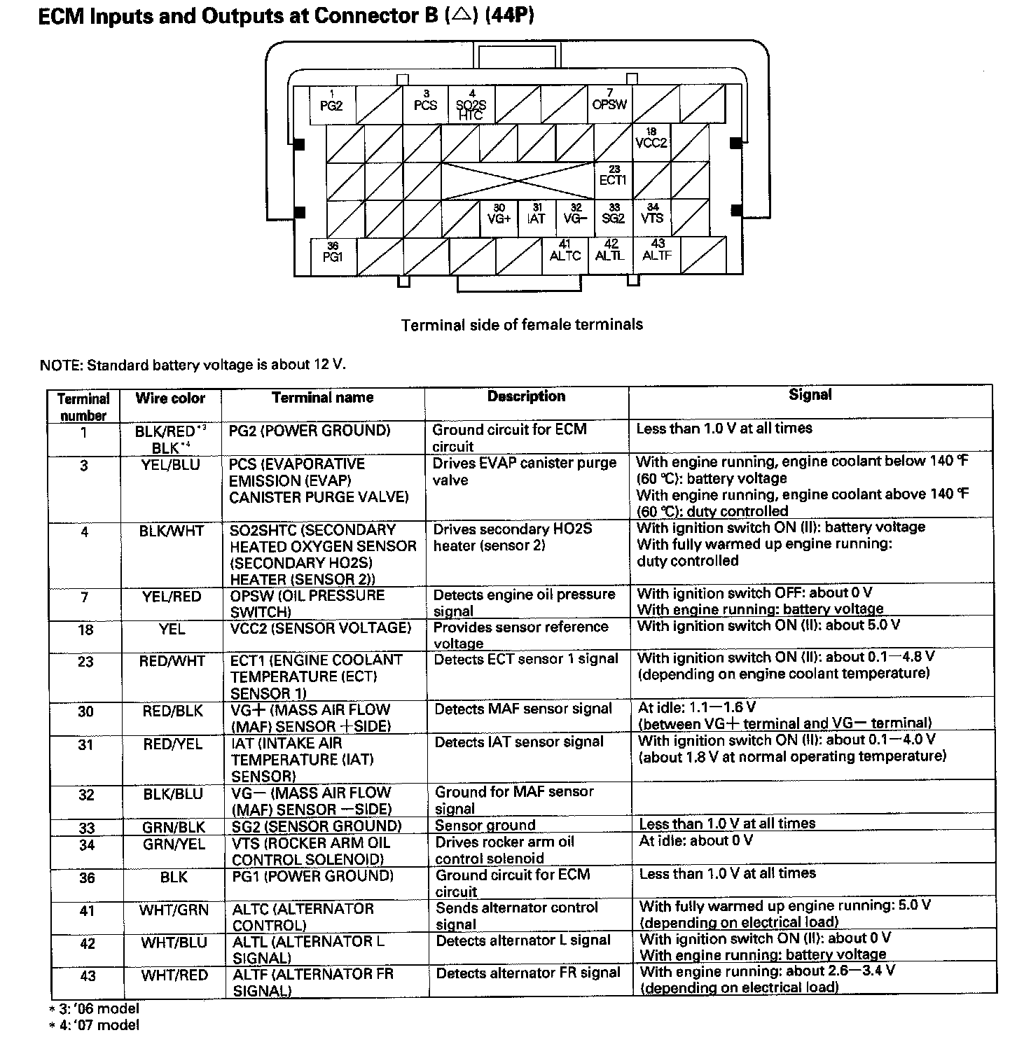 Home >> Honda >> 2007 >> Civic Si L4-2.0L >> Repair and Diagnosis >> Powertrain Management >> Computers and Control Systems >> Engine Control Module >> Testing and Inspection >> Pinout Values and Diagnostic Parameters