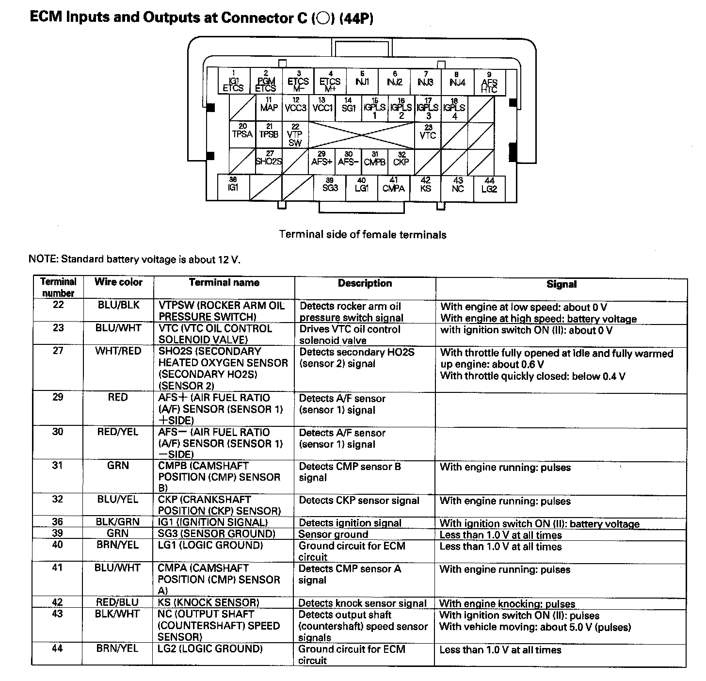ECM Inputs And Outputs Connector C (44P) (Part 1):