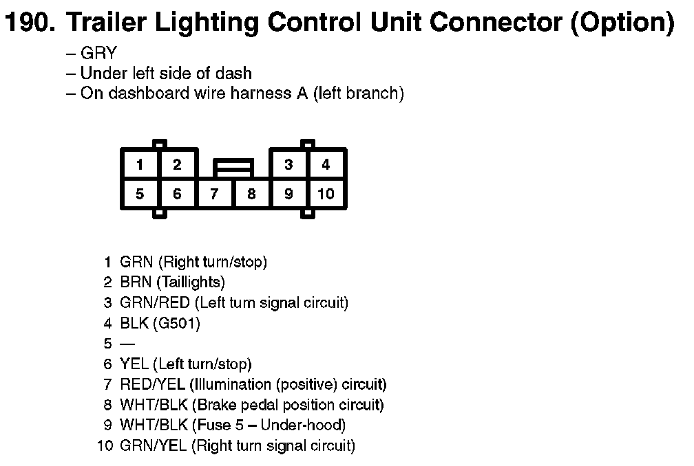 190. Trailer Lighting Control Unit Connector (Option):