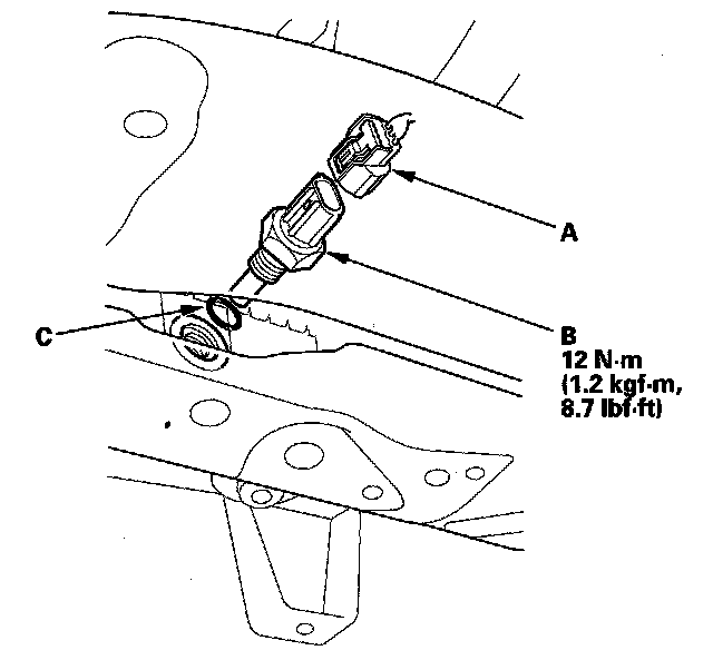 5. Install the parts in the reverse order of removal with a new O-ring (C) coated with the clean engine oil, then refill the radiator with engine coolant.