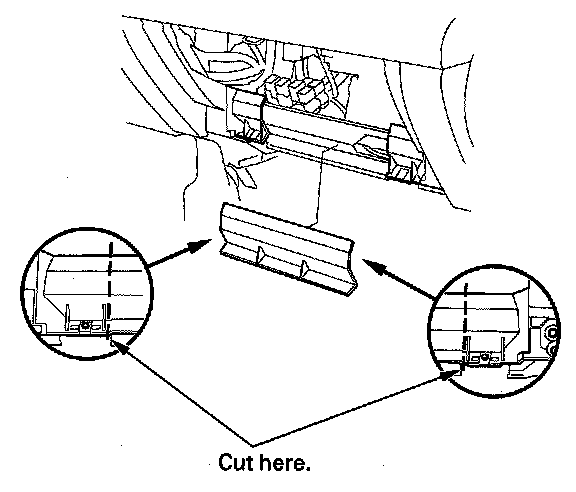 11. Cut the plastic cross brace in the glove box opening with diagonal cutters in the area shown, and discard it.