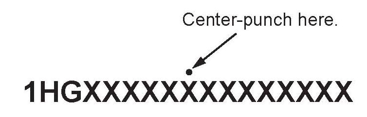 2. Center-punch a completion mark above the ninth character of the engine compartment VIN: