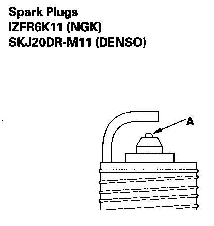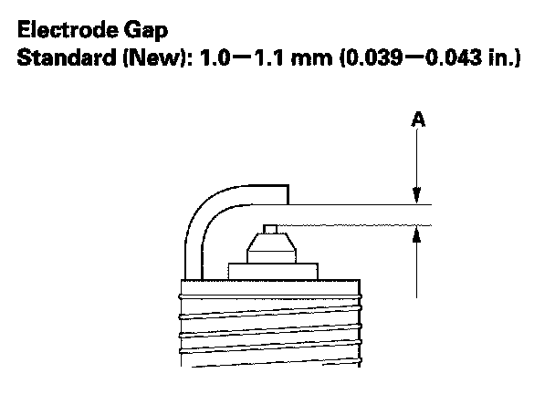 3. Do not adjust the gap (A) of iridium tip plugs; replace the spark plug if the gap is out of specification.