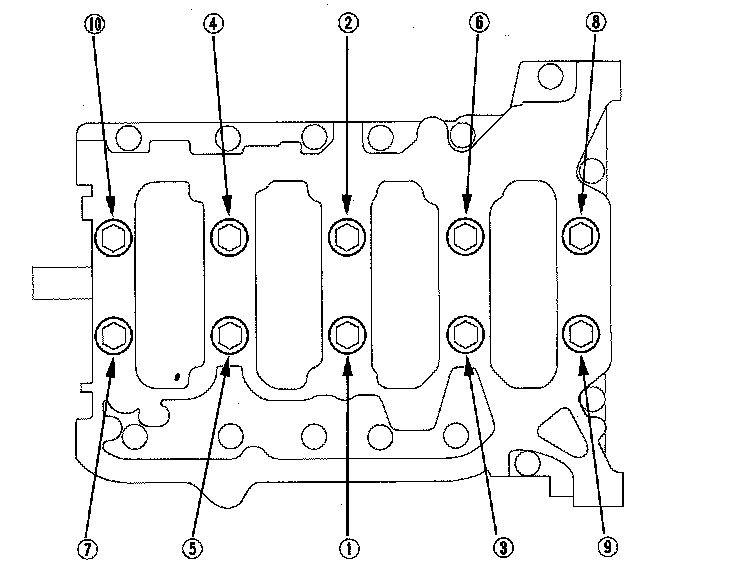 Tighten the bearing cap bolts in sequence 29 Nm (3.0 kgf-m, 22 lbf-ft).
