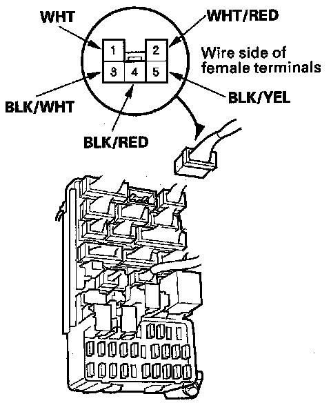 2. Disconnect connector A (5P) from the under-dash fuse/relay box.