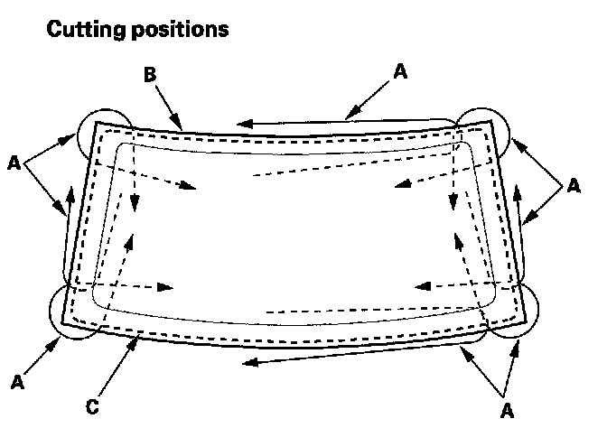 - When replacing a broken windshield, a commercially available windshield cutter can be efficiently used for cutting the adhesive. For details, follow the instructions of the tool manufacturer.