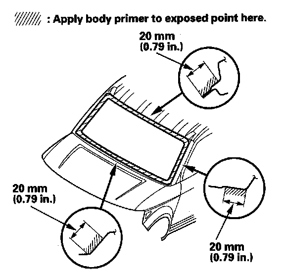 - Never touch the primed surfaces with your hands. If you do, the adhesive may not bond to the windshield properly, causing a leak after the windshield is installed.