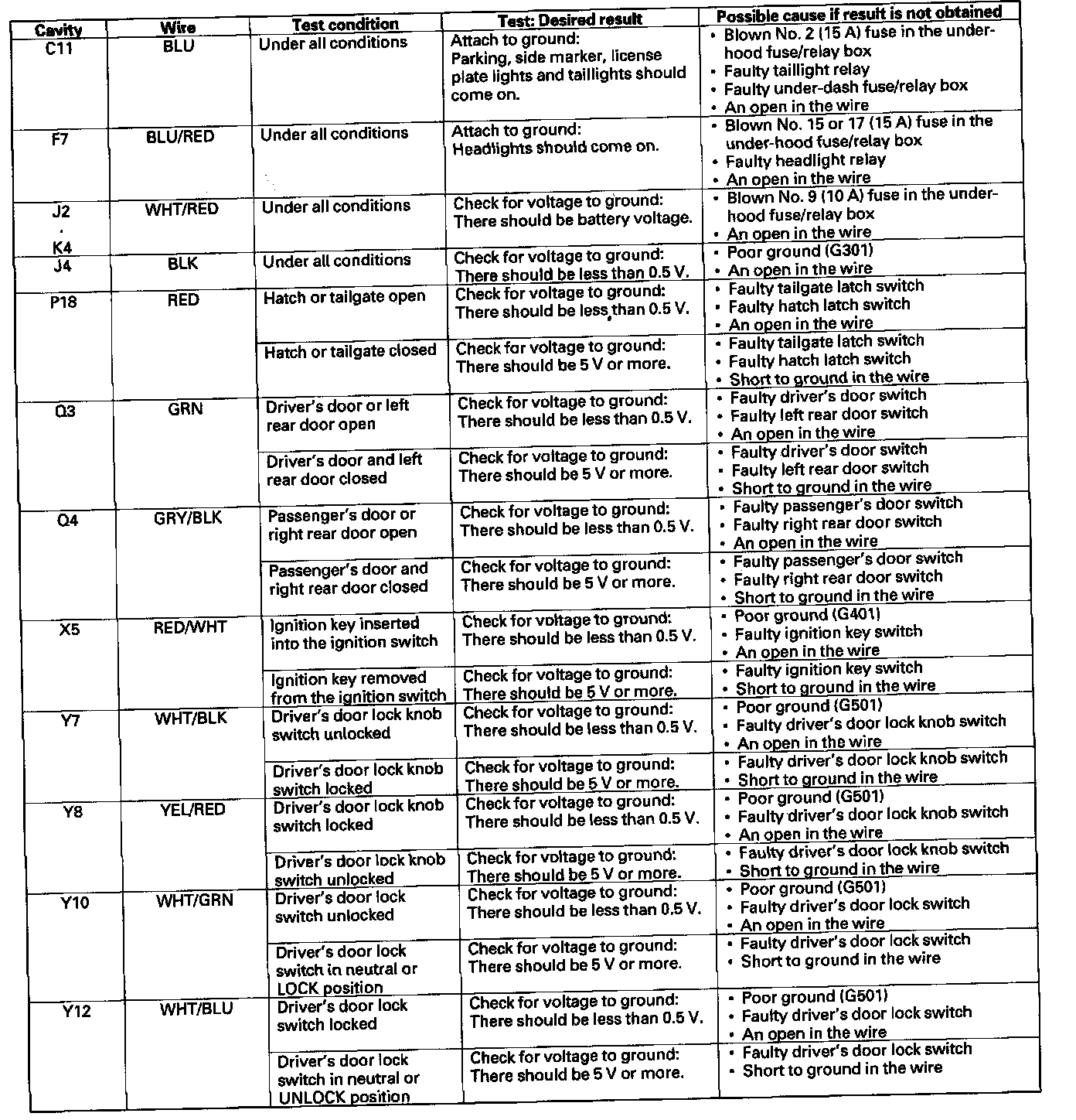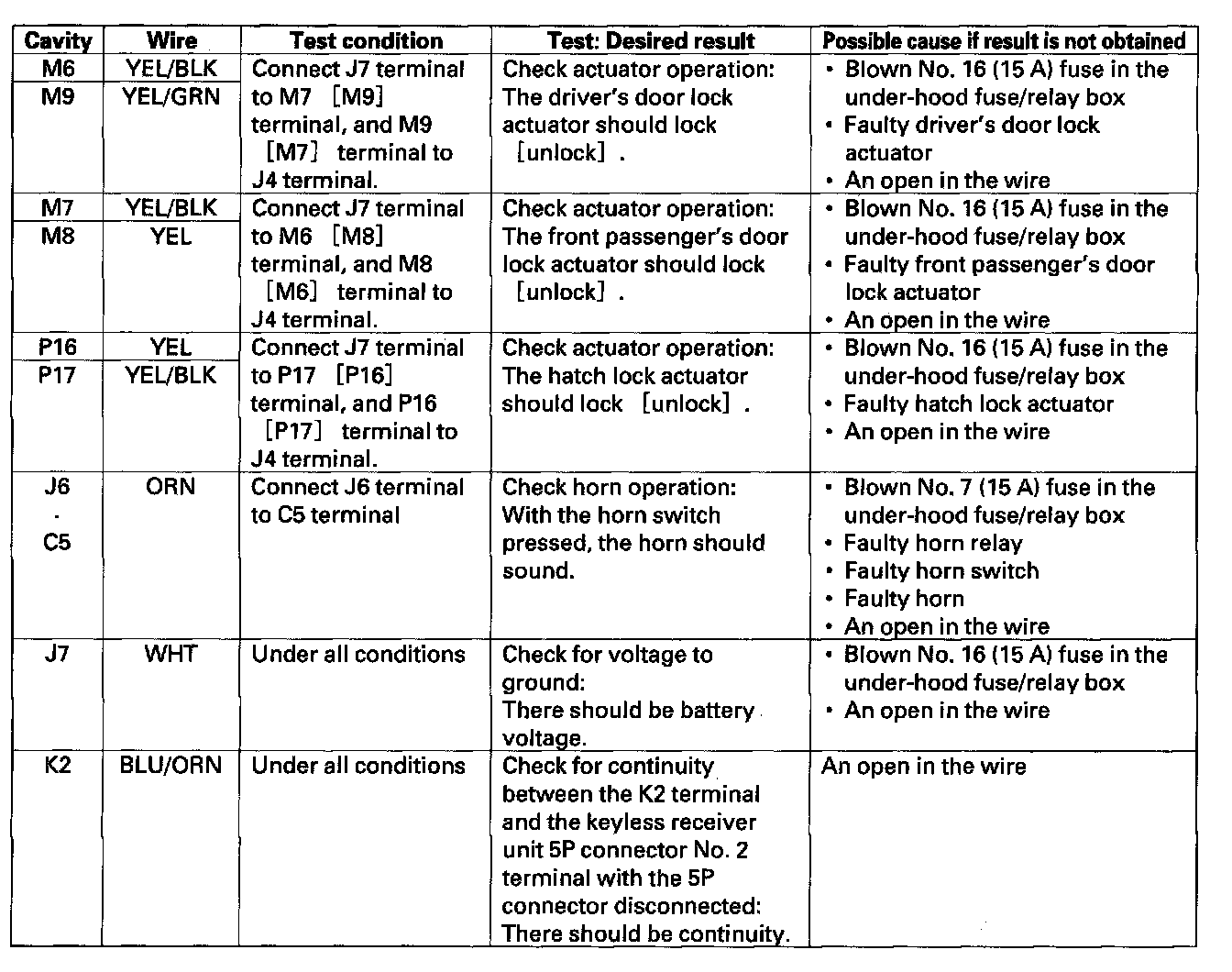 Home >> Honda >> 2007 >> Element 4WD L4-2.4L >> Repair and Diagnosis >> Body and Frame >> Locks >> Keyless Entry >> Testing and Inspection >> Control Unit Input Test