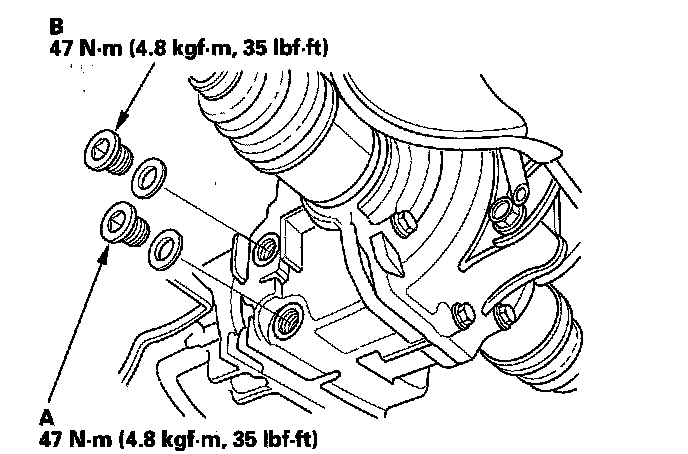 6. Reinstall the filler plug (B) with a new washer.