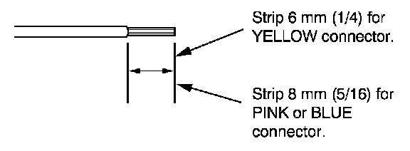 7. If you are using a yellow splice connector, strip about 6 mm (1/4 inch) of insulation off the ends of both wires. If you are using a pink or blue splice connector, strip off about 8 mm (5/16 inch) of insulation.