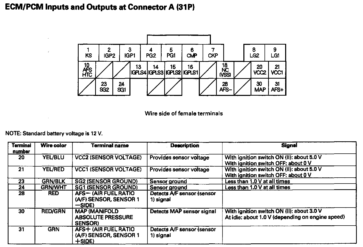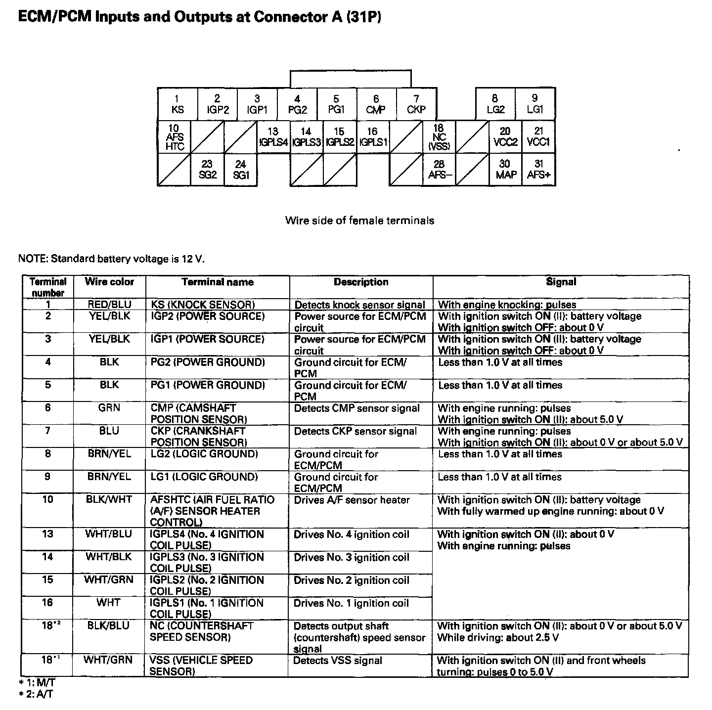 ECM/PCM Inputs And Outputs At Connector A (31P) Part 1: