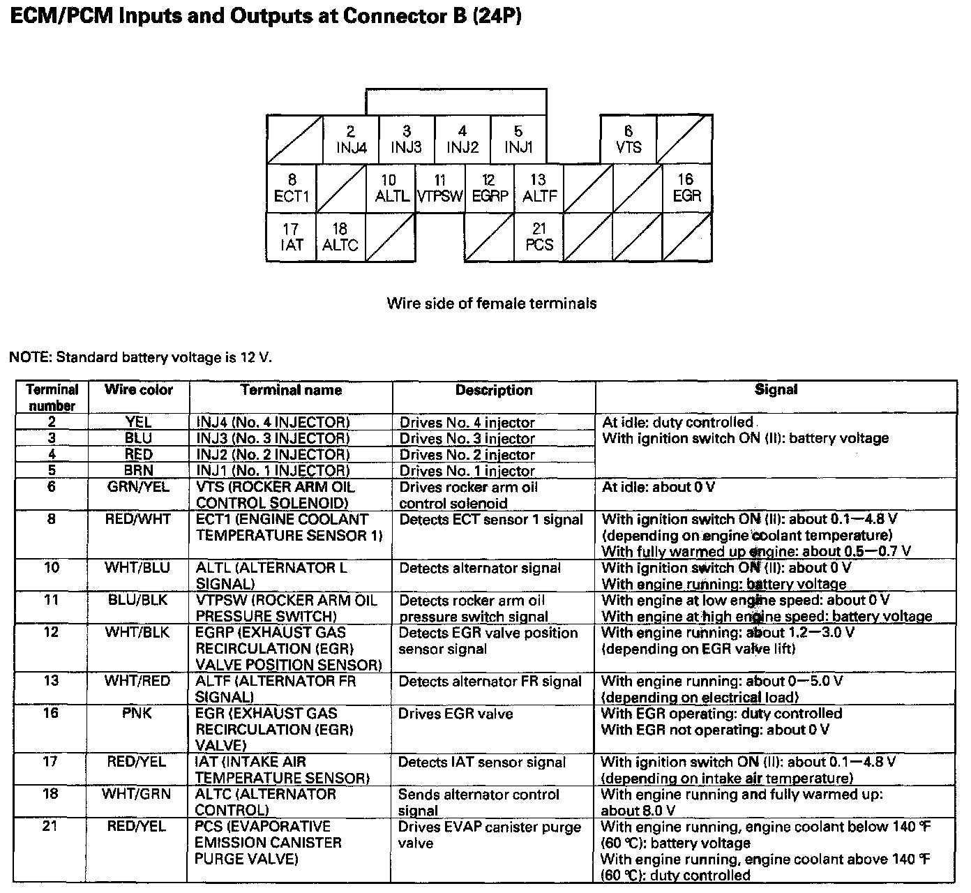 ECM/PCM Inputs And Outputs At Connector B (24P):