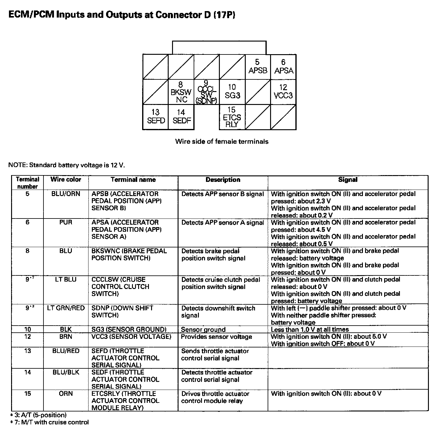 ECM/PCM Inputs And Outputs At Connector D (17P):
