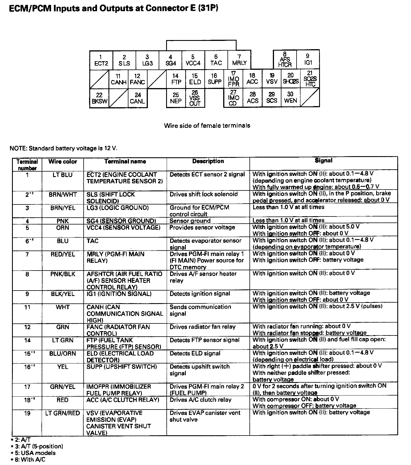 ECM/PCM Inputs And Outputs At Connector E (31P) Part 1: