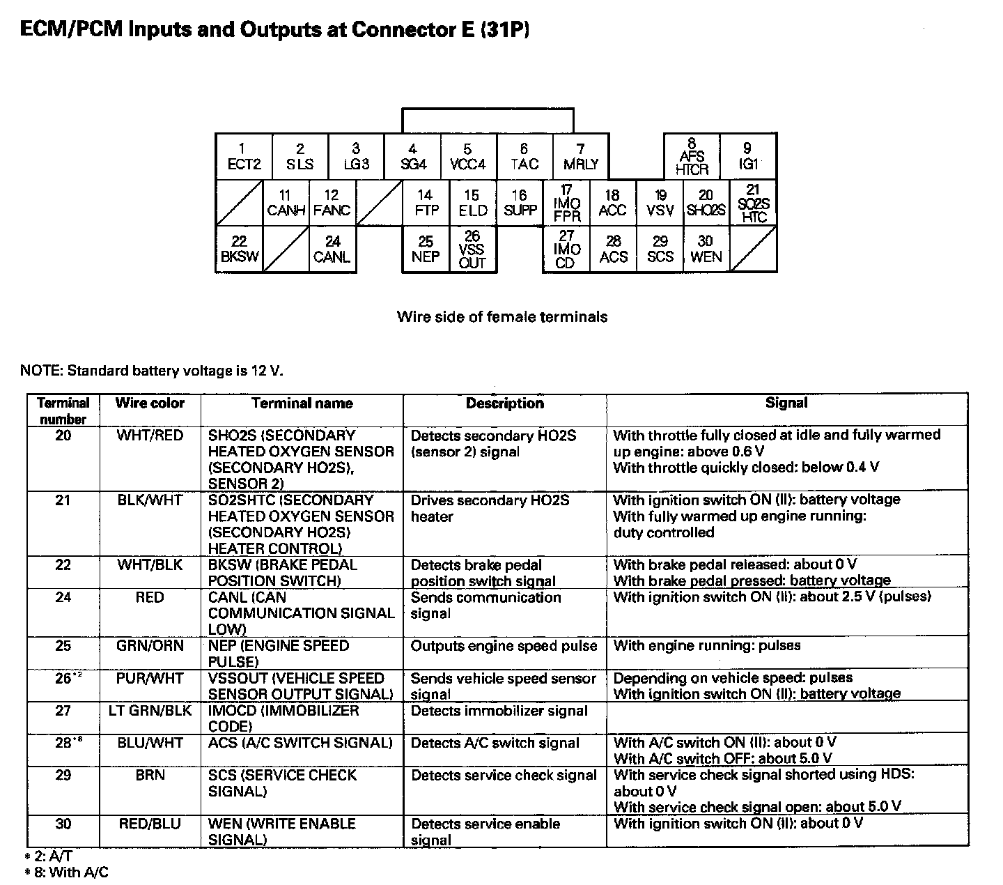 ECM/PCM Inputs And Outputs At Connector E (31P) Part 2: