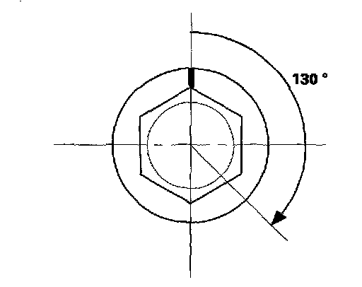 Tighten all cylinder head bolts an additional 130°.