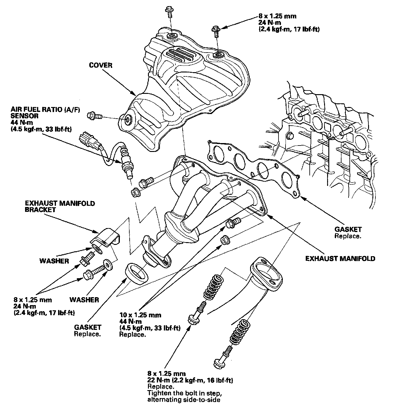 Tighten the cylinder head bolts in sequence to 29 N.m (3.0 kgf.m, 22 lbf.ft).