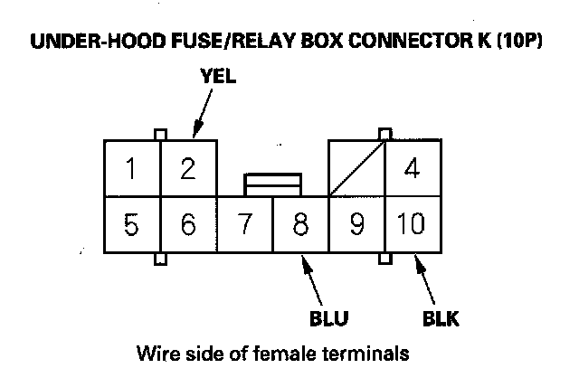 2. Disconnect the under-hood fuse/relay box connector K (10P).