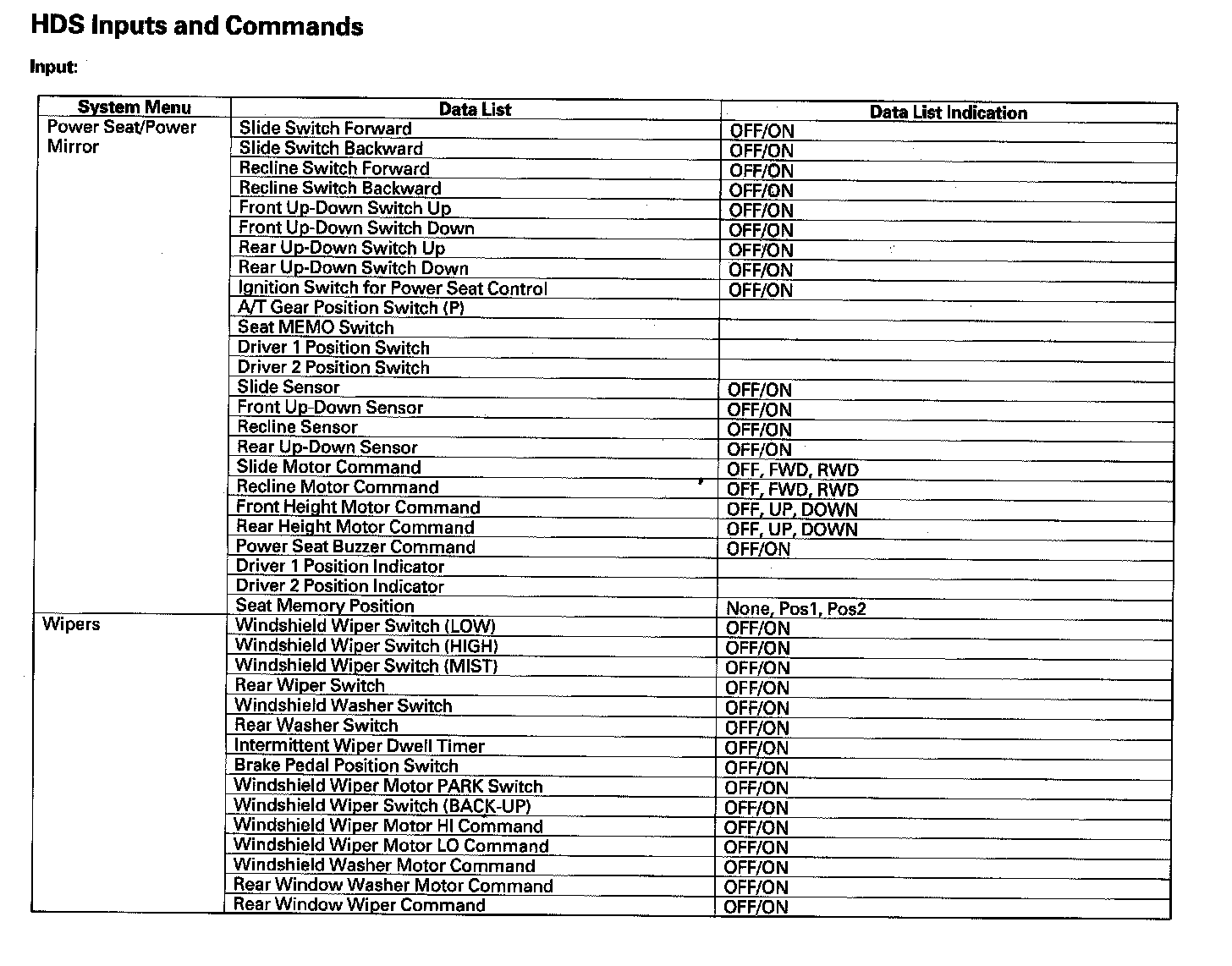 HDS Inputs And Commands Input Part 1: